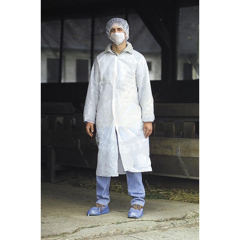 Kit complet de protectie pentru vizitatori in ferma. Contine: halat, protectie incaltaminte, masca de protectie, boneta.